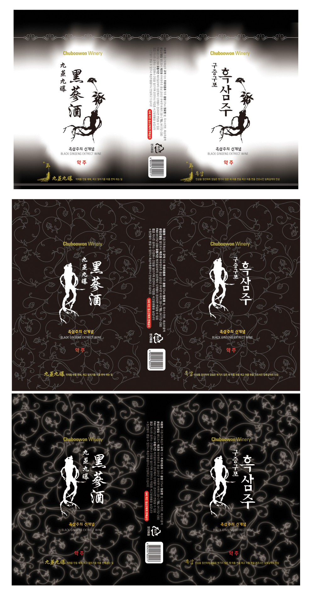 흑삼주라는 술병 패키지 디자인을 하는 중입니다.