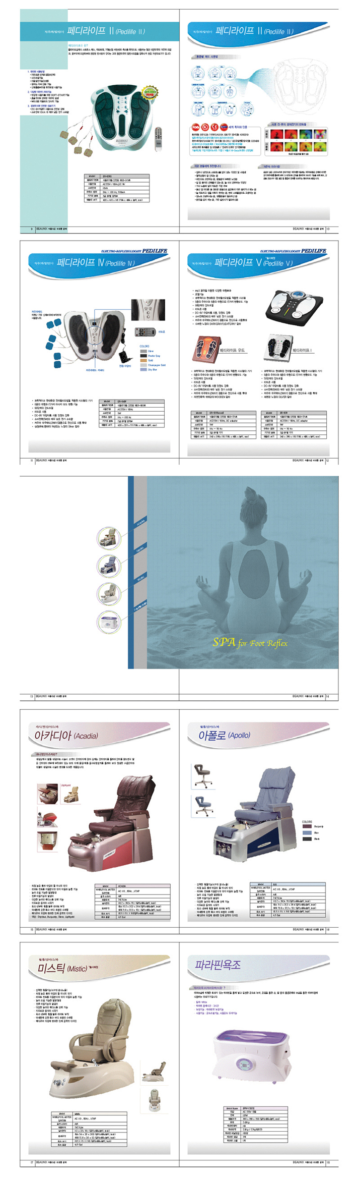 우리의... 소원은... 통일~ 꿈에도... 음;;; 표지 뒷면에 주소부분이.. 하단왼쪽위치에 오른쪽정렬이라는게 좀 걸립니다.; 1p에서 2p로 넘어가는 그라데이션 끝에 걸린 두선이 답답해보여요; 1p를 2p까지 침범 안하는 선에서 마무리하시고 2p에 표오른쪽 붙은 선을 떼어주시는게 좋을듯합니다; 왼쪽만막혀있으니 세로선을 안넣은 의미가 없어지는듯;; 3~6p는.. 같은느낌으로 가실 의도시면 레이아웃을 좀더 통일시키는것이 좋을듯 합니다;; 7, 9p 왼쪽 바 뚫고 내용 넣으신 부분은 미색이라도 깔아서 바를 연결시키시는것이... 정리되 보일듯 싶구요....(아니면 다른제품설명페이지와 같은 레이아웃으로...) 13~14p는 좌우가 바뀌었으면 더 보기 편할듯 합니다;; 제품설명부분 밑에 넣으신 그라데이션은... 풀로 채우시거나 빼시는것이.. 시원해 보일듯하네요 ;; 이상 주제넘은.. 지극히 주관적인 -_-;; 공허생각 이였습니다;; 불쾌하셨다면 죄송합니다(__)