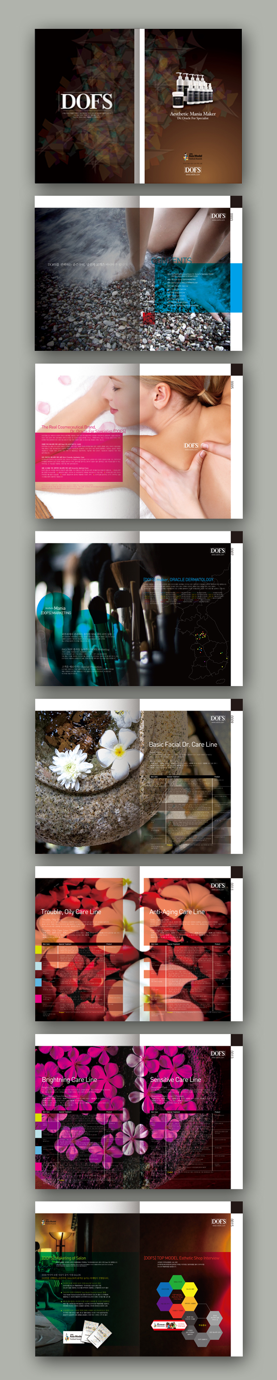 다들 너무 좋다고만 올리셔서..전 쓴소리를... 개인적인 제 생각으로는, 전체적으로는 훌륭하고 괜찮지만 마지막에서 두번째 세번째 페이지는 좀 어지럽습니다. 바탕이 풀이미지이니 텍스트는 최대한 심플하게 하셨으면 좋았을것 같아요. 왼편에 4가지 칼라가 들어간건 좀 옥의티인듯하고 마지막 세번째이미지중에서 오른쪽페이지의 왼쪽하단에 이빠진듯한 박스가 거슬립니다. 하지만 과감한 디자인 아주 좋습니다