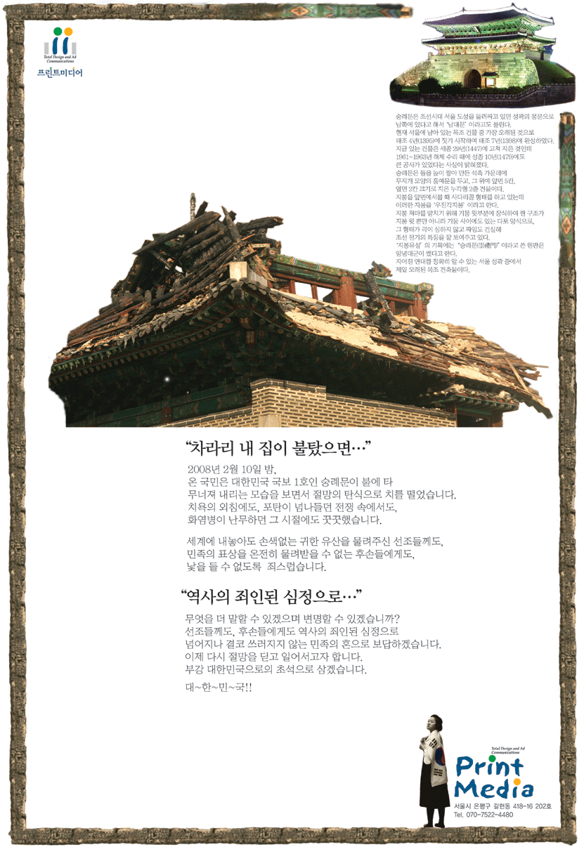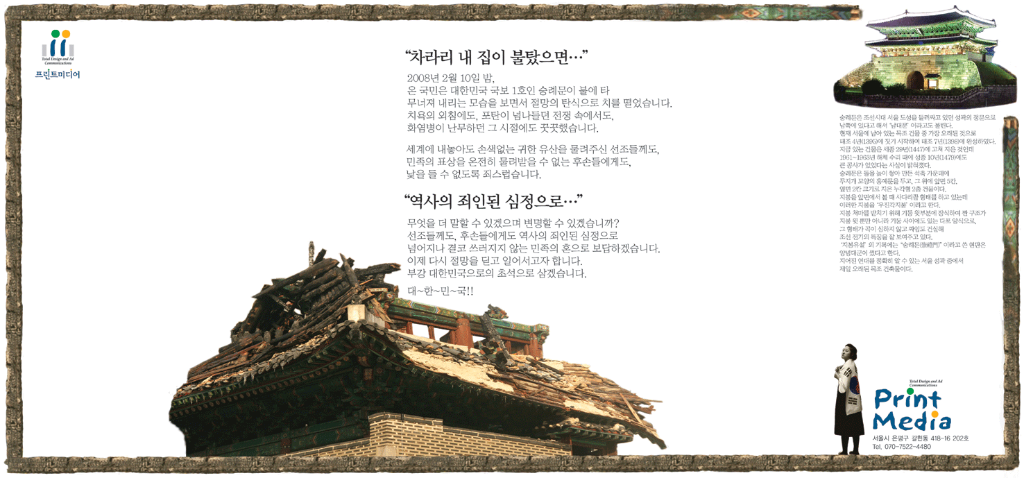 숭례문 화재 공익 신문, 잡지광고를 만들어 봤습니다.