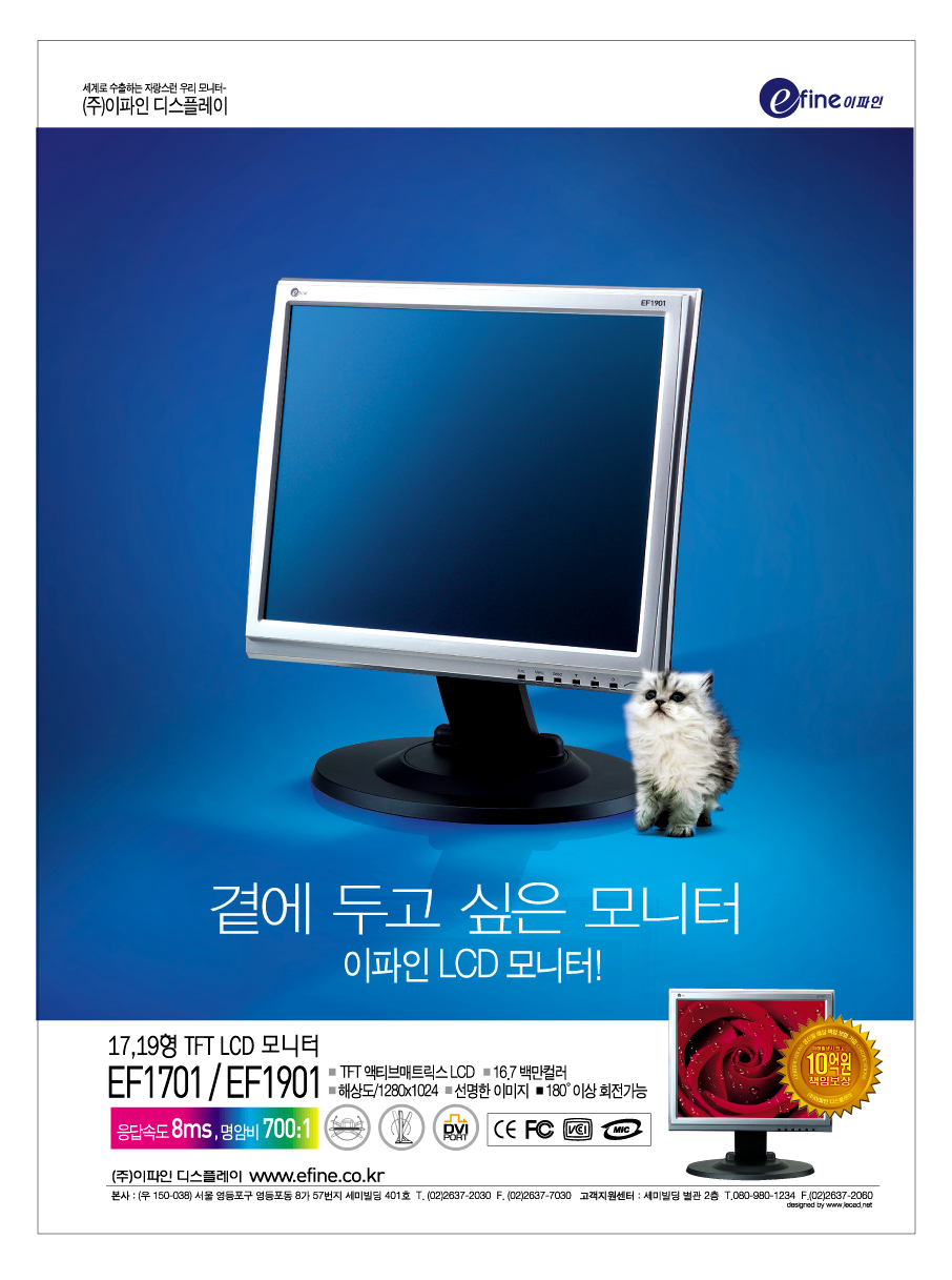 그런... 점이 부족한거 같다는 생각이 드네요.. 고양이를 제품과 연상적으로 표현했다면.. 모니터에 흔하지만,, 바다속 풍경을 표현해 물고기를 잡을수 있게 한다거나.. 다른 고양이를 모니터에 놓고 사랑을 영상게 해주어도 좋지 않을까요!!.. 조금 식상하기는 하죠.... 항상 보는 광고같기도하고.. 그냥.. 제 작은 생각이였습니다.